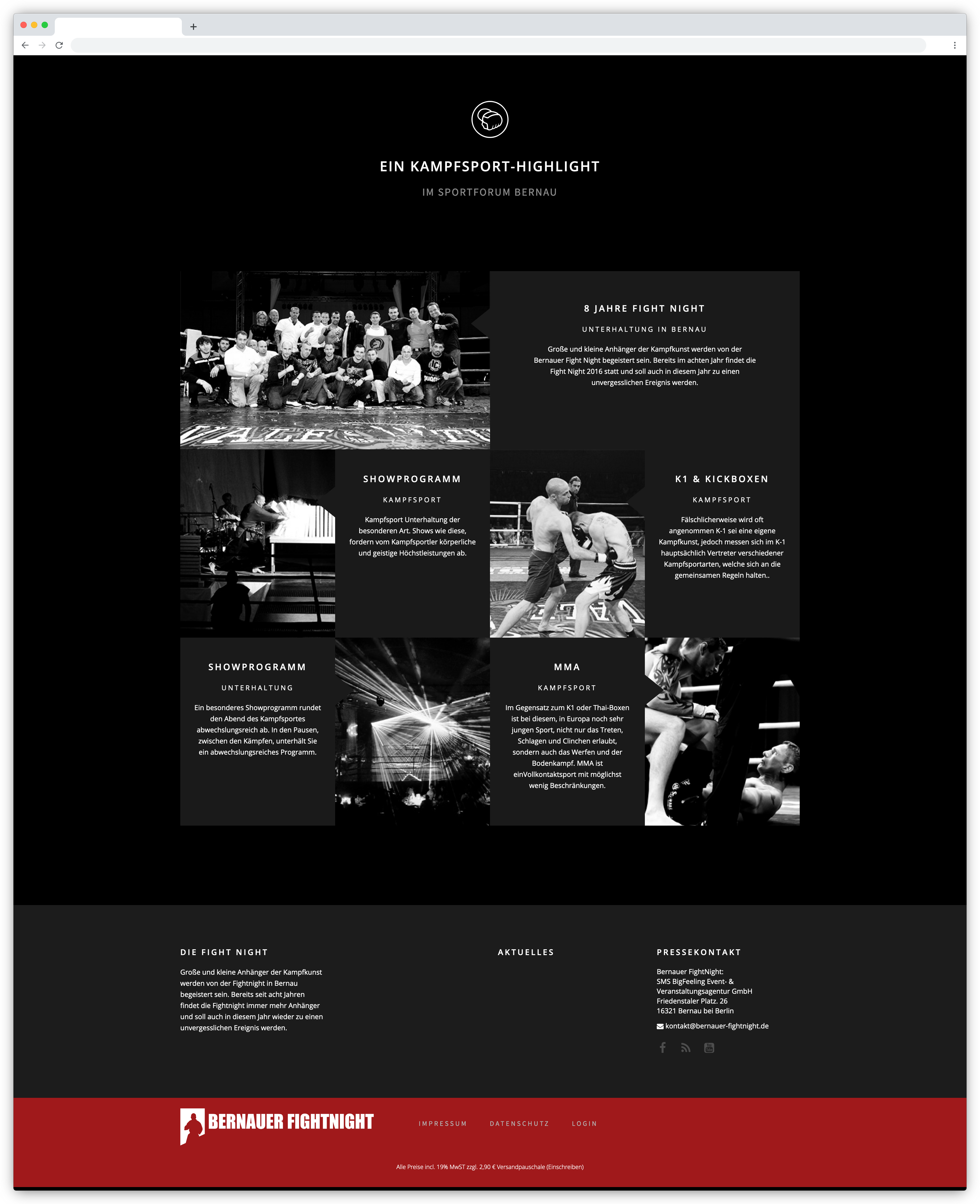 Die Bernauer FightNight ist ein gemeinsames Kampfsport-Event-Projekt vom K4 Zentrum Eberswalde von Robert Pausch und der SMS BigFeeling Event- & Veranstaltungsagentur.