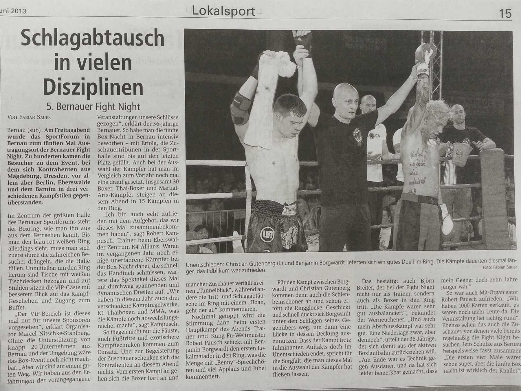 Das bereits schon früher stattfindende jährliche Kampfsport Event in Bernau haben wir bereits im Jahre 2011 angefangen zu professionalisieren und seit dem jährlich bis 2016 gemeinsam mit Robert Pausch durchgeführt.