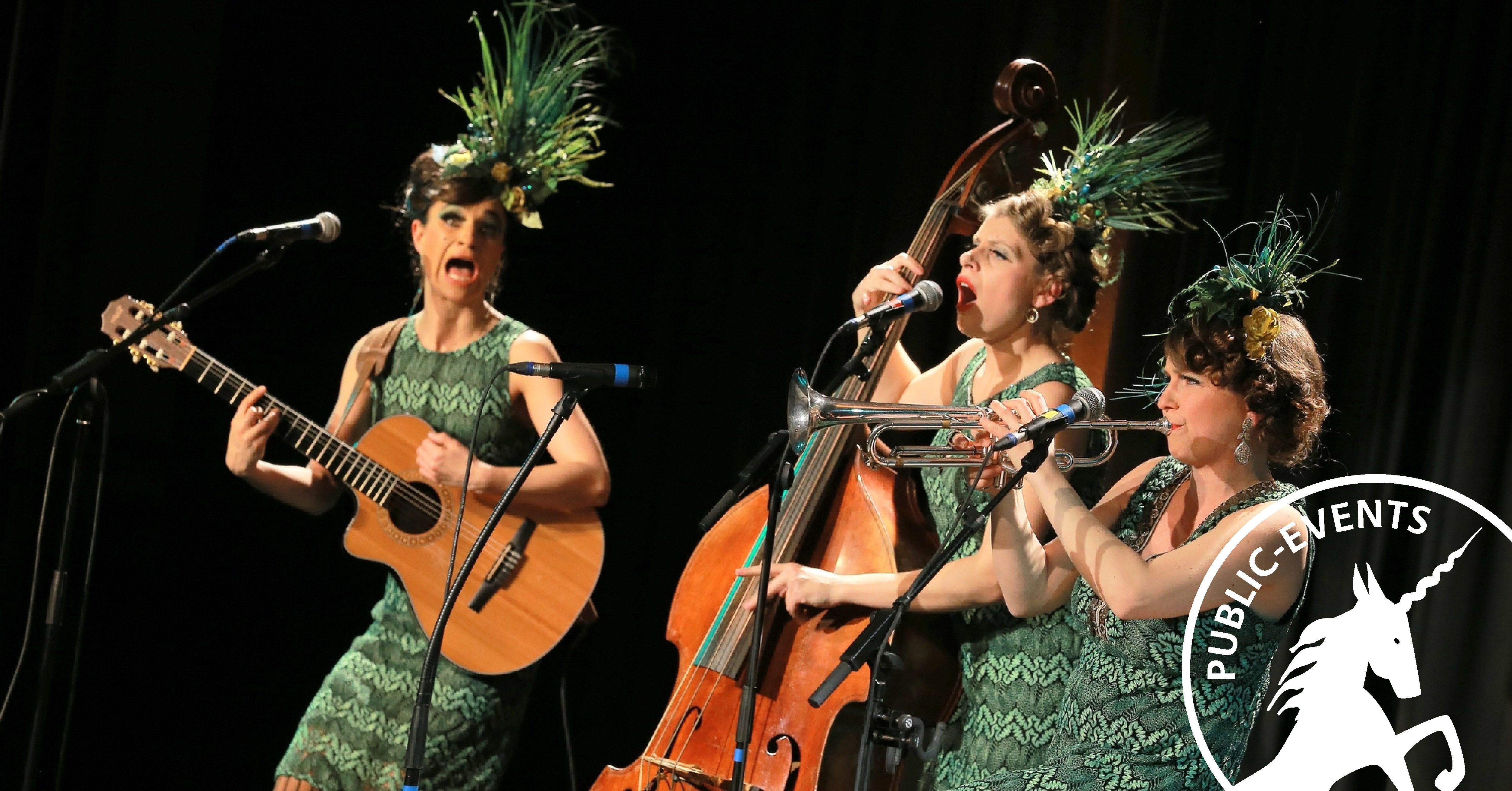 Um es gleich vorweg zu nehmen: Ein Abend mit den Zucchini Sistaz ist kein Konzert. Es ist ein Ereignis! Kaum betreten die drei kokett frisierten Schwestern ganz in Grün die Bühne, geraten alle Sinne durcheinander: Ist das jetzt ein Augen- oder ein Ohrenschmaus? Sind die drei exzellente Sängerinnen, hingebungsvolle Instrumentalistinnen oder salopp-charmante Entertainerinnen? Ist das mitreißende Swingmusik oder glamourös-ironisches Cabaret? Ist das bei dieser aufregenden Leichtigkeit überhaupt relevant? Wenn im Publikum vom ersten Ton an unbemerkt die Füße mitwippen und sich die Mundwinkel unwillkürlich ein Stückchen nach oben heben, darf man sich einfach mitten ins Geschehen fallen lassen. Mit der Eleganz vergangener Tage und dem Selbstbewusstsein von heute greifen die Zucchini Sistaz beherzt in die Saiten und begleiten ihren herausragenden Close-Harmony-Satzgesang kurzerhand selber. Während Jule Balandat souverän den Kontrabass beackert, liefert Tina La Werzinger den schmissigen Part dieser dualen Rhythmusgruppe an der Schlaggitarre, bisweilen sogar äußerst frappant an der Ukulele. Die besonders schwungvolle Bereicherung ist Schnittchen Schnittker, die virtuos an der Trompete mit einfällt und nach Lust und Laune auch mal zu anderem ‚Klimbim‘ wie Klarinette, Posaune, Flügelhorn und Akkordeon greift.